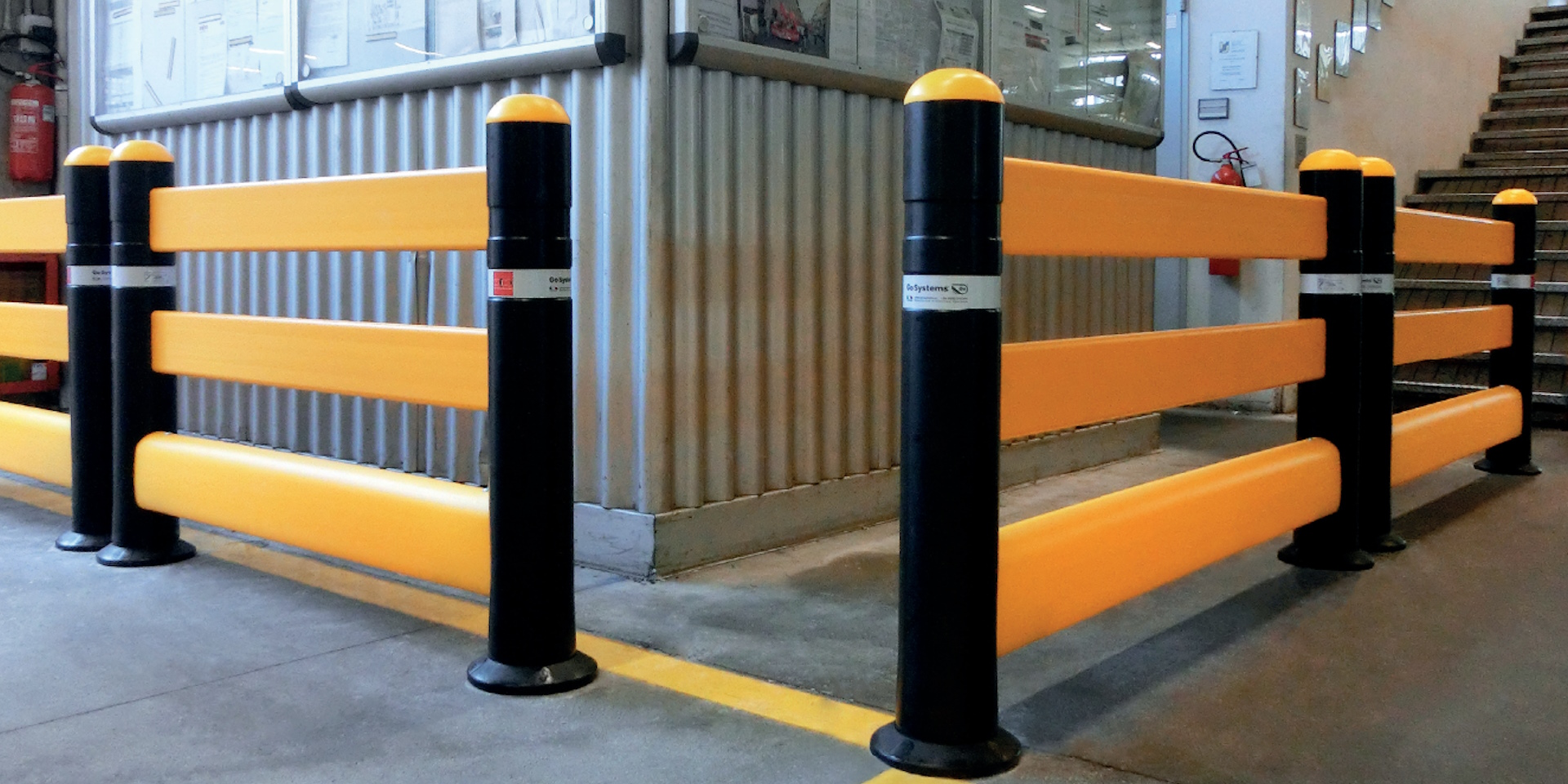 Onze pedestrian rail is geschikt om aanrijdingen van bijvoorbeeld rolcontainers en trollies te weerstaan maar niet bedoeld als fysieke bescherming tegen heftruckverkeer in uw bedrijfspand. Onze pedestrian rail heeft altijd een hoogte van 1090 mm waarbij u naar keuze de twee of drie profielen kunt toepassen.