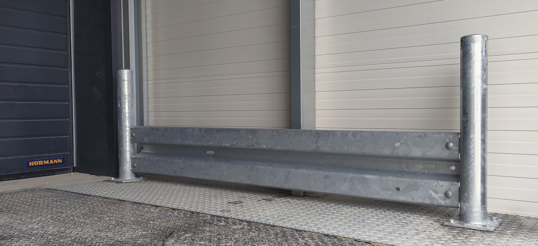 Daarnaast is er op verschillende plaatsen inpandig ook een lichte aanrijdbeveiliging geplaatst op locaties waar uitsluitend rolcontainers rijden.